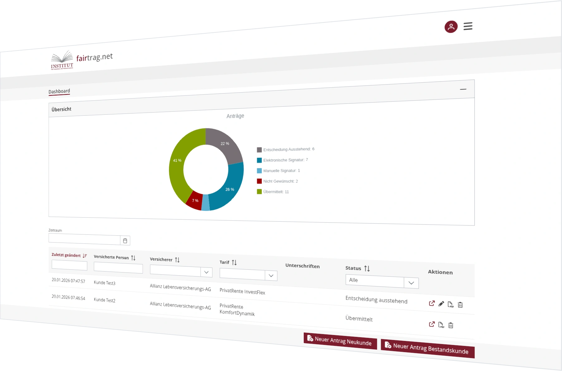 fairtrag ist nahtlos eingebunden in die IVFP-Anwendungen fairadvisor.net und fairgleichen.net.